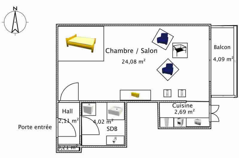 Plan du studio du 19, rue Bizanet